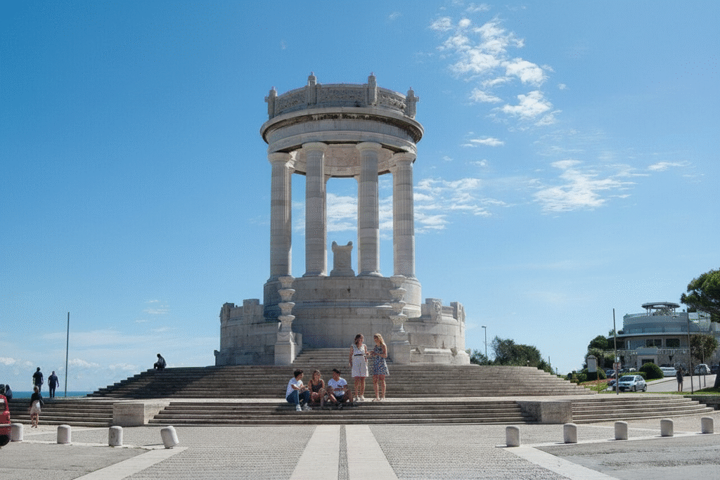 Designed by architect Guido Cirilli in the early 1930s, it is a circular temple in Istrian stone with eight columns, overlooking the sea and connected to the beach by a monumental staircase.
